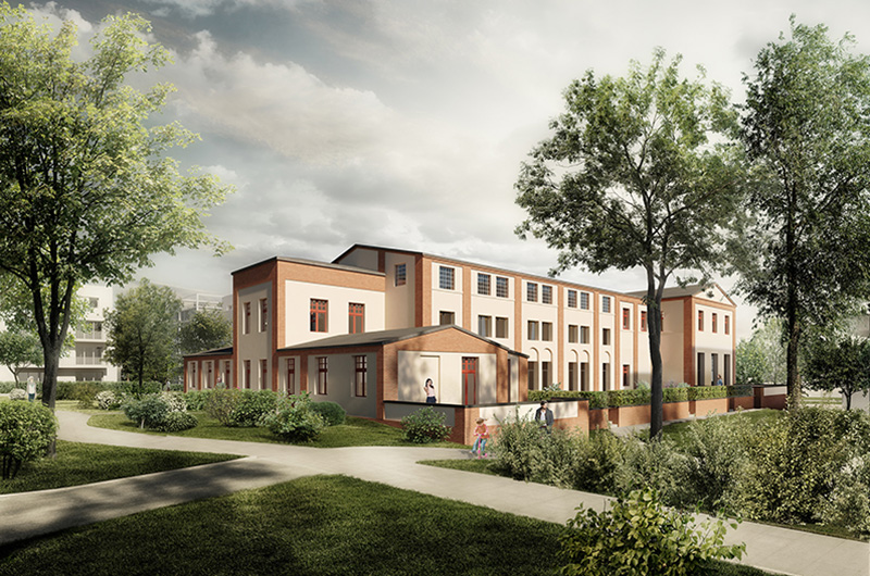 Umnutzung der denkmalgeschützten "Alten Wäscherei" des Krankenhauses Hamburg Ochsenzoll zu Wohnungen.