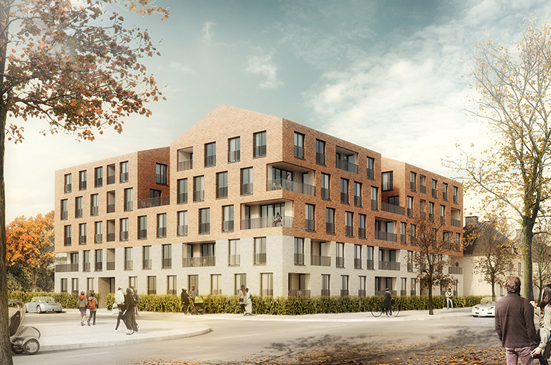 Konzept für eine genossenschaftliche Wohnanlage im Kontext eines denkmalgeschützten Ensembles.